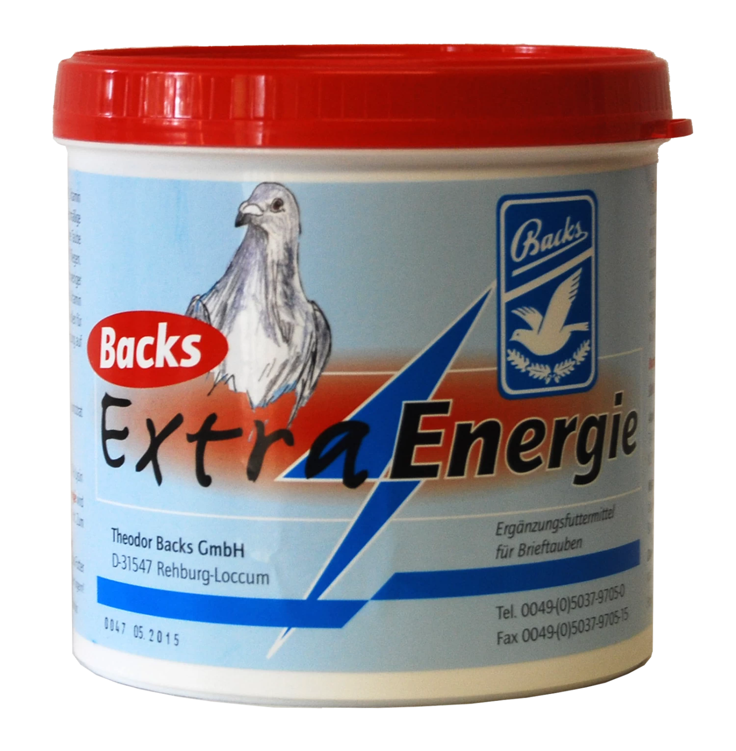 Backs Extra Energie enthält gut verdauliche Kohlenhydrate. Die mit Sorgfalt gewählten Kohlenhydrate sollen eine gleichmäßige Umwandlung der Stärke in Glycogen bewirken. Durch die Zusammensetzung soll die Taube länger Energie aus Kohlenhydraten gewinnen und damit