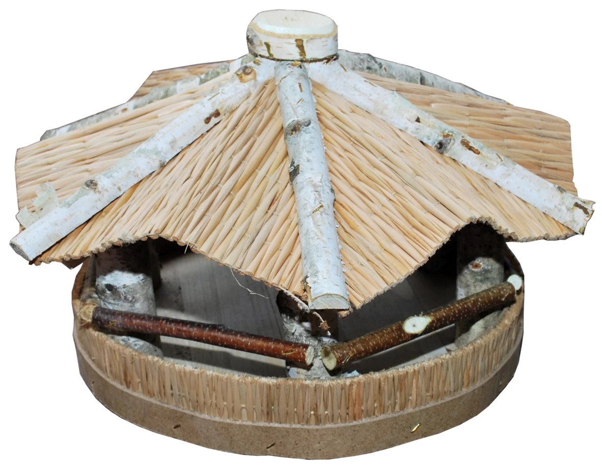 Futterhaus Aus Birkenholz Mit Strohdach, Rund