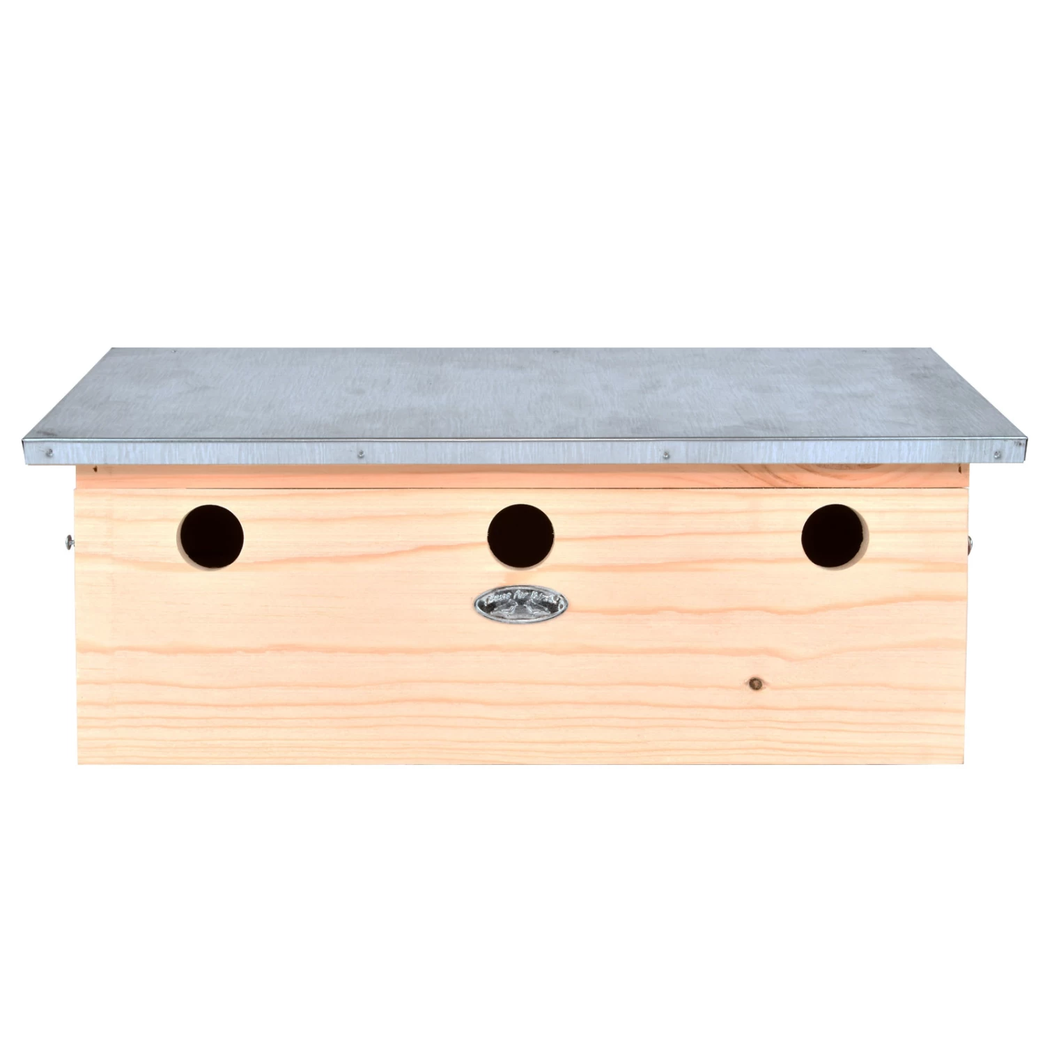 Mit diesem Nistkasten können Sie gleich mehreren Spatzen einen Nistplatz bieten. Außerdem können Sie auf Feldsperlinge, Kohl- sowie Blaumeisen als Bewohner hoffen.