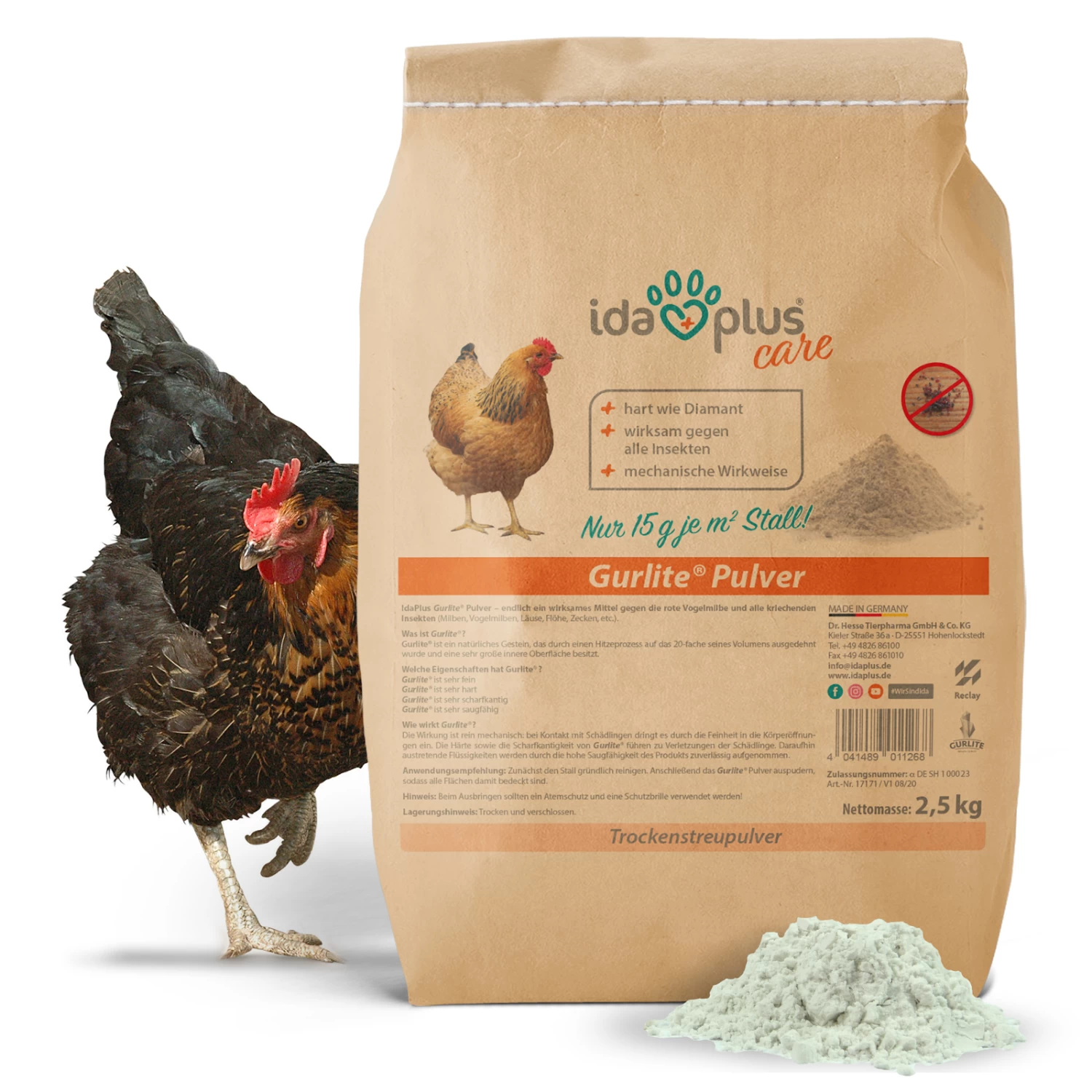 Den Stall gründlich reinigen und anschließend das Gurlite-Pulver auspudern, so dass alle Fläche damit bedeckt sind.