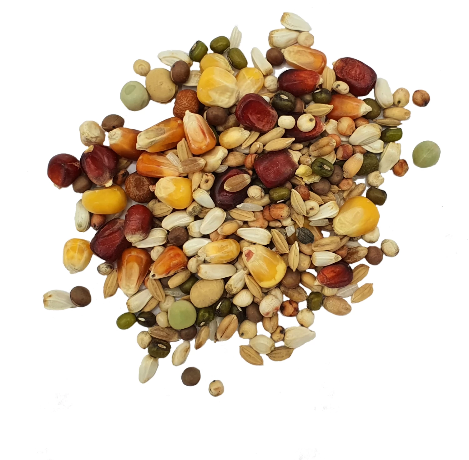 Dari, Mais Bordeau, Kardysaat, Cribbsmais gelb, Haferkerne, Weizen hell, Milokorn, Erbsen grün, Wicken, Ahornerbsen, Cribbsmais klein, Katjang Idjoe, Paddy-Reis, Mais rot